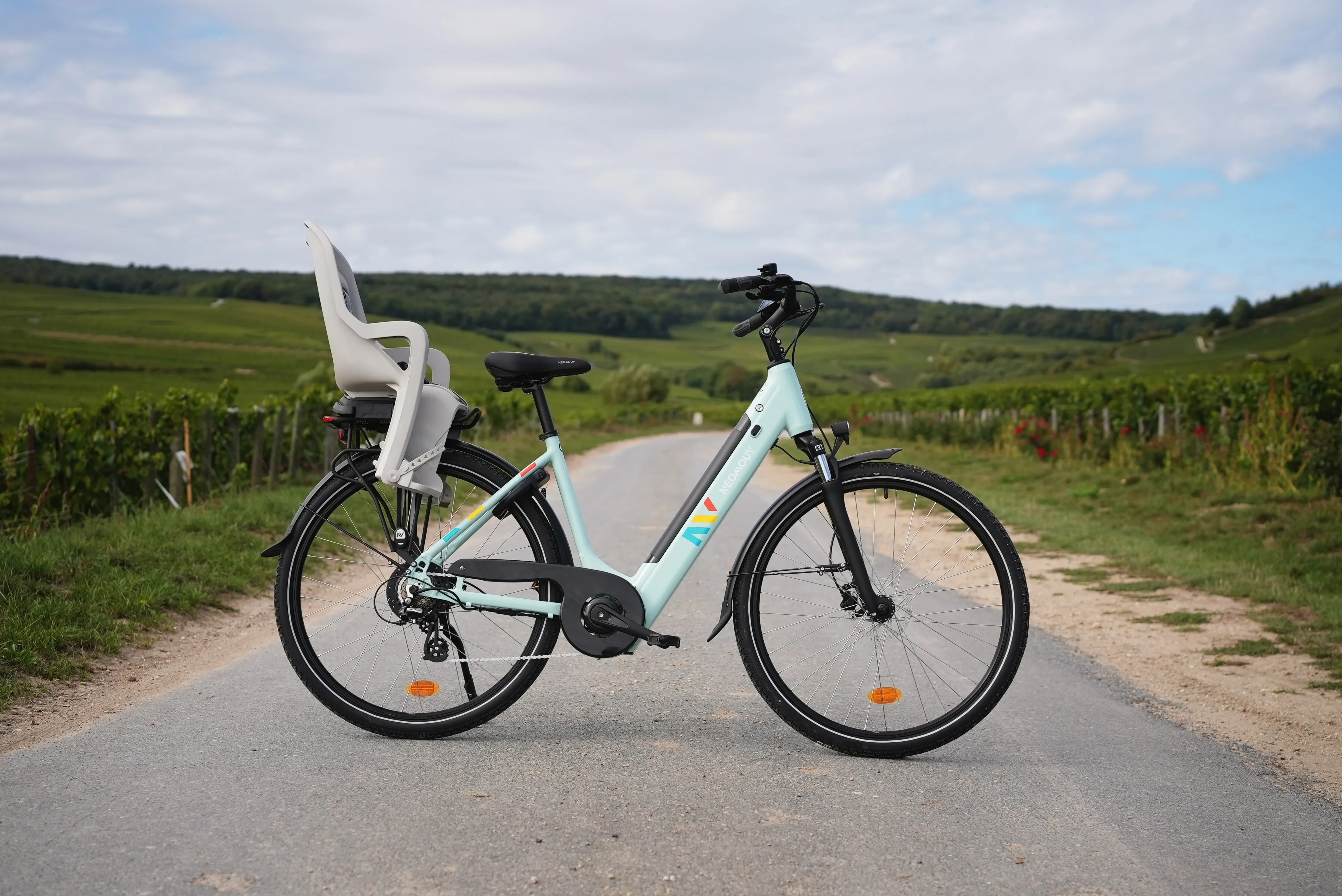 Rear rack mounted - suitable for children with a maximum weight of 22 Kg, and a maximum height of 110 cm.